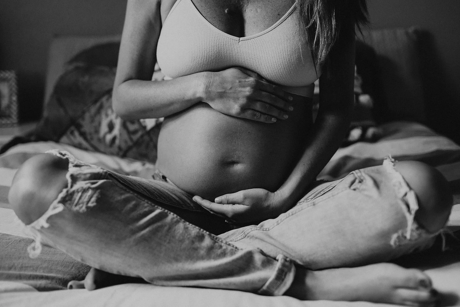 -If you do want to wear jeans for a few “relaxed” style portraits, I would recommend brining a pair of your pre-pregnancy jeans to avoid the belly band.